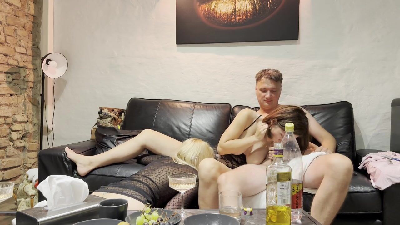 Hot afterparty, two girls sucking dick, wife lets to fuck her friend and lick her pussy